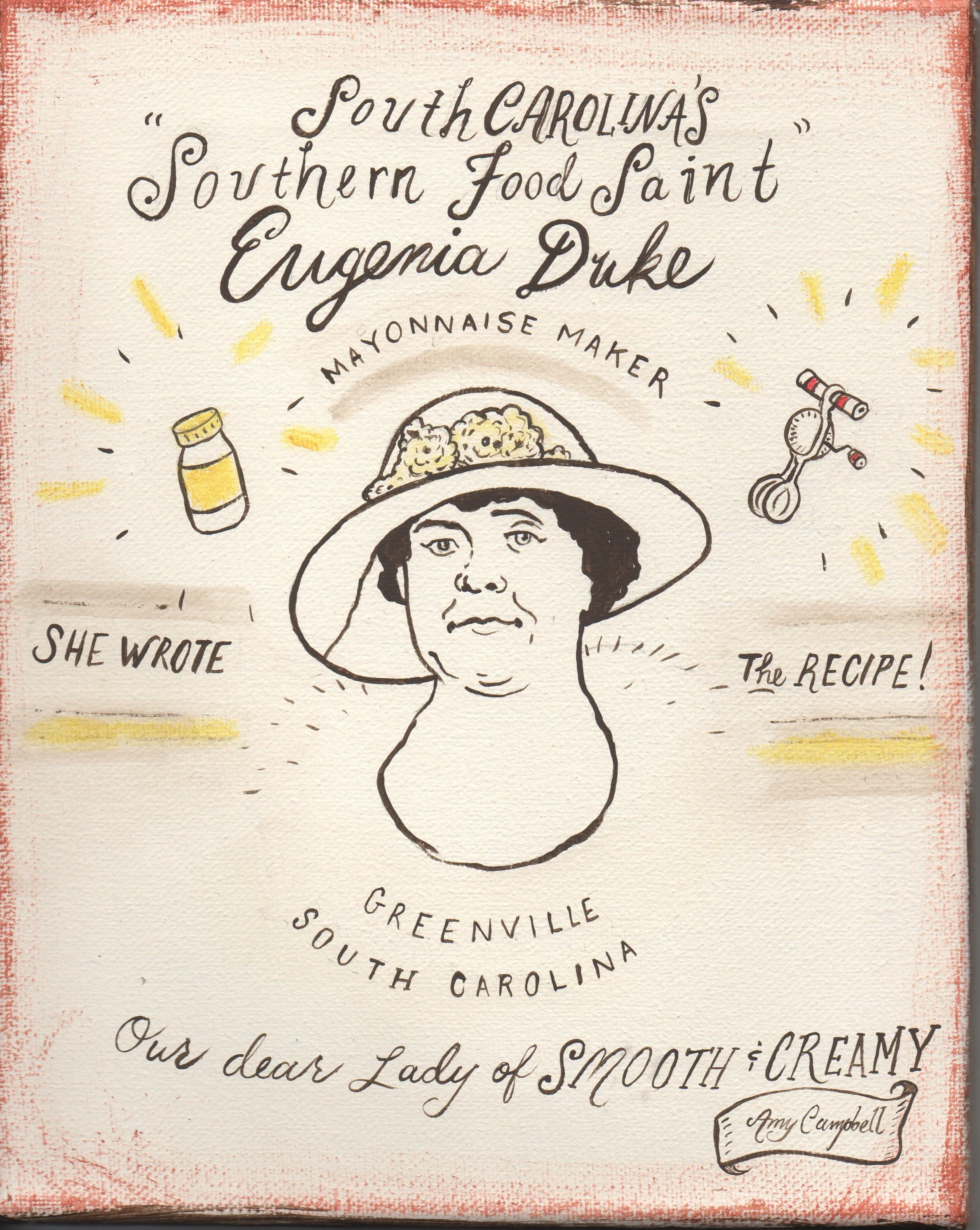 Portrait of Eugenia Duke (she created Duke’s Mayonnaise and wrote the recipe) https://studysc.org/sc-people/eugenia-duke. Painted by Amy Campbell. More information on Amy’s Art https://www.tennesseefarmtable.com/amys-appalachian-musical-pioneers-paintings