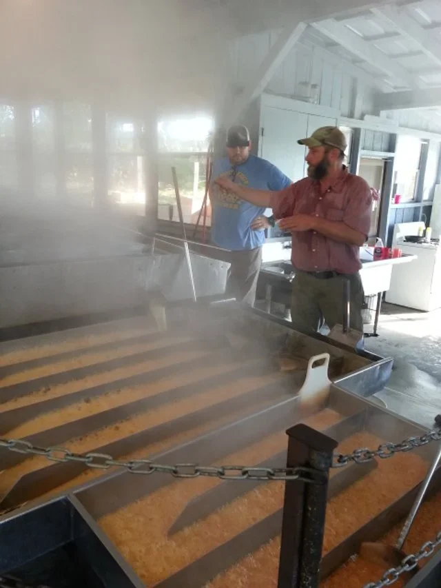 Marc Gunther shows a crew of us (including Chef Jeffrey DeAlejandro) his Muddy Pond Sorghum Mill boiling operation in the fall of 2017. Muddy Pond Sorghum Mill is located in Monterey, TN and they do not advertise with this show. Photo: Amy Campbell https://www.muddypondsorghum.com/